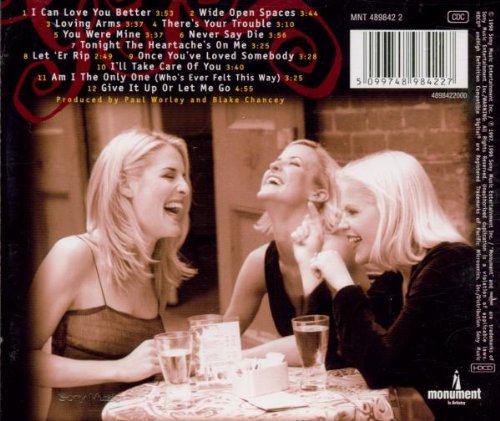The Dixie Chicks let 'er rip and hit the majors with a new lead singer and a new sound that struck a balance between traditional country and pop music. Sisters Martie and Emily Erwin had started the band almost a decade earlier with Laura Lynch and Robin Lynn Macy playing bluegrass and country music. Macy left after the band's second independent release 'Little Ol' Cowgirl' saw them moving toward a more contemporary sound with session musicians. They recorded one more album 'Shouldn't a Told You That' with Lynch taking lead vocals before replacing her with Natalie Maines, the daughter of session guitarist Lloyd Maines who had played on two of their albums. They were the first group signed to Sony's new version of their aquired Monument Records. 'Wide Open Spaces' was recorded with a stable of producers: Jim Burnett, Mark Capps, Tony Castle, Blake Chancey, Erik Hellerman, Clarke Schleicher, Ed Simonton, and Paul Worley. The sessions featured Natalie Maines on lead vocals; Emily Robison on acoustic guitar, banjo, dobro, and vocals; and Martie Seidel on fiddle, mandolin, and vocals. Studio musicians included: Mark Casstevens on acoustic guitar; Bobby Charles, Jr. on bass; Joe Chemay and Michael Rhodes on bass guitar; Billy Crain on acoustic guitar; Lloyd Maines and Tony Paoletta on steel guitar; George Marinelli and Tommy Nash on electric guitar; Matt Rollings on piano and Hammond organ; Billy Joe Walker, Jr. and Paul Worley on acoustic and electric guitar; Tom Roady on shakuhachi, conga, and tambourine; and Greg Morrow on drums.